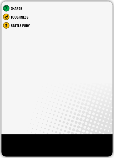 | Power | Battle Fury, Blades/Claws/Fangs, Charge, Super Strength, Toughness |