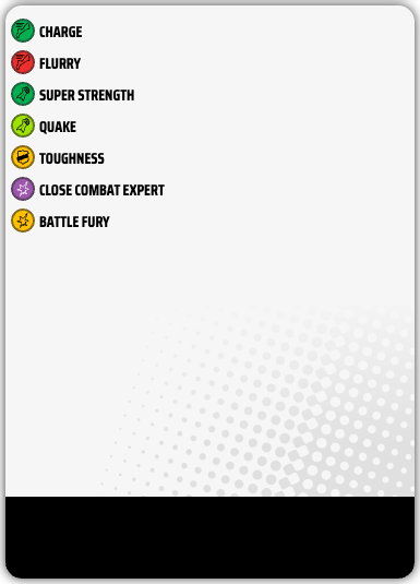 | Power | Charge, Close Combat Expert, Invulnerability, Leadership, Mastermind, Mind Control, Super Strength |