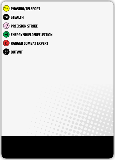 | Power | Phasing/Teleport, Ranged Combat Expert, Super Senses |
