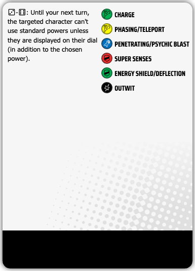 | Power | Blades/Claws/Fangs, Charge, Energy Shield/Deflection, Outwit, Phasing/Teleport, Super Senses |