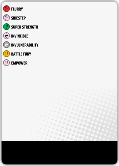 | Power | Battle Fury, Charge, Flurry, Invincible, Sidestep, Super Strength |