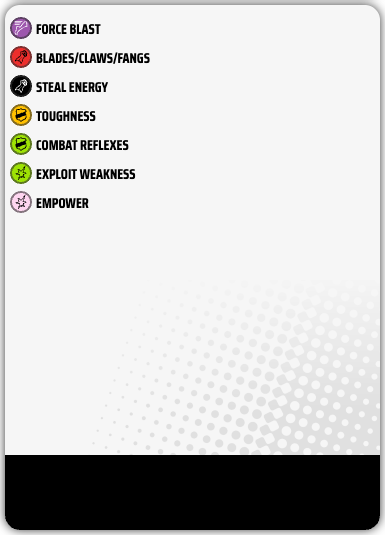 Blades/Claws/Fangs, Charge, Exploit Weakness, Leap/Climb, Poison, Toughness